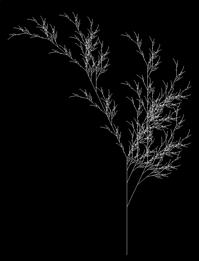 At this point, an L-system is nothing more than a way to generate very long strings of characters. In order to get something useful out of this, we have to give them meaning.